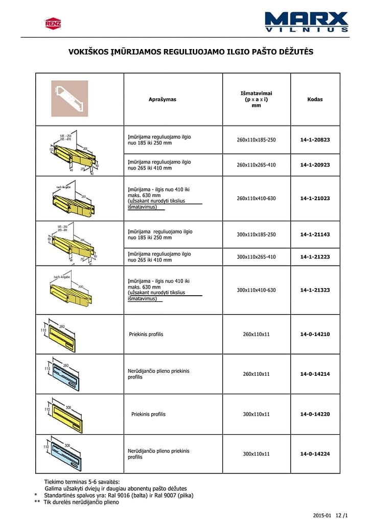 Sienos plotis: max 15000 mm per plokštę