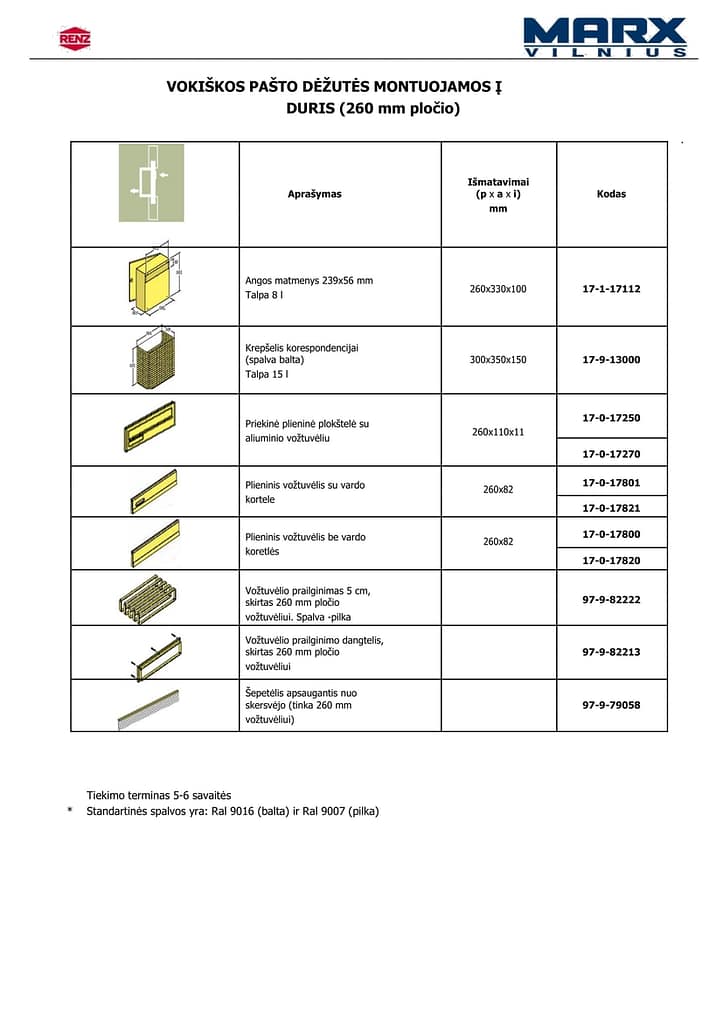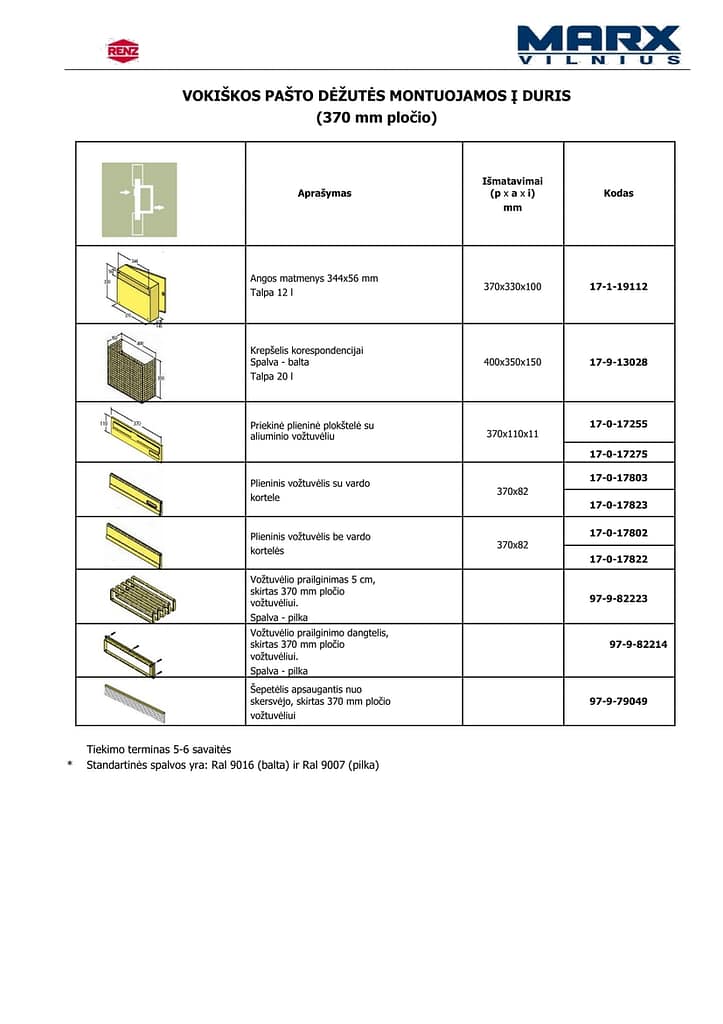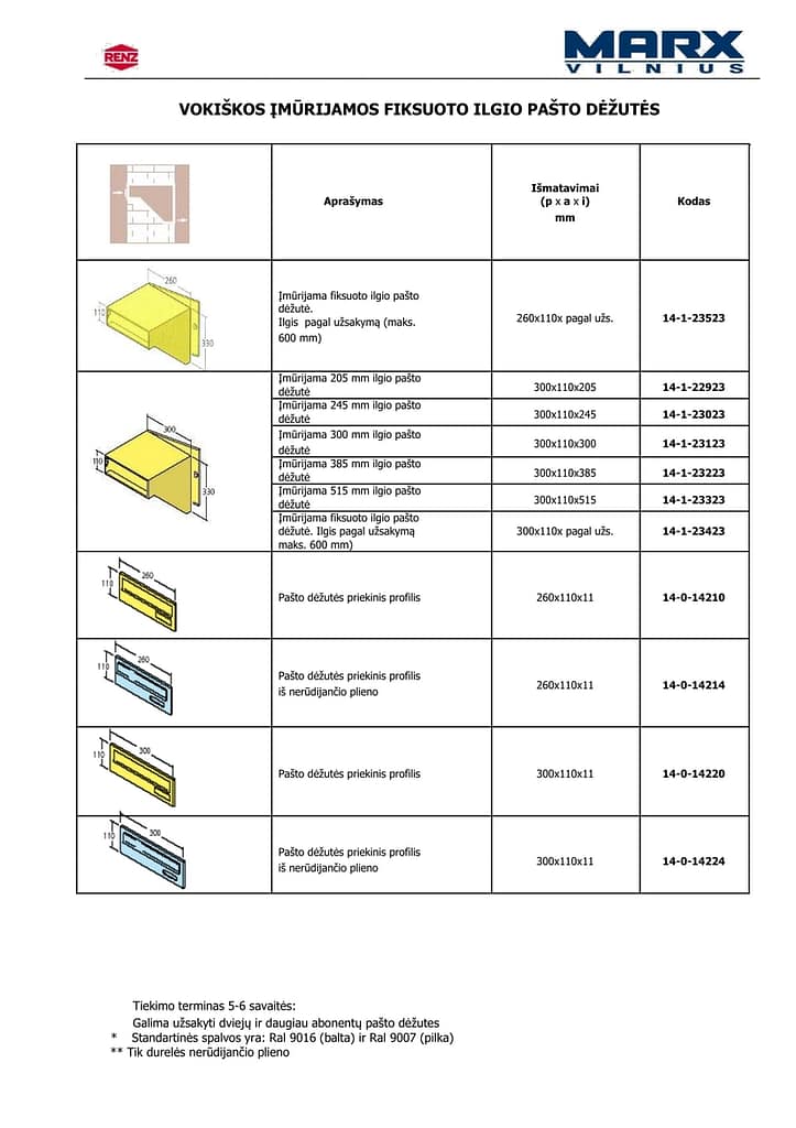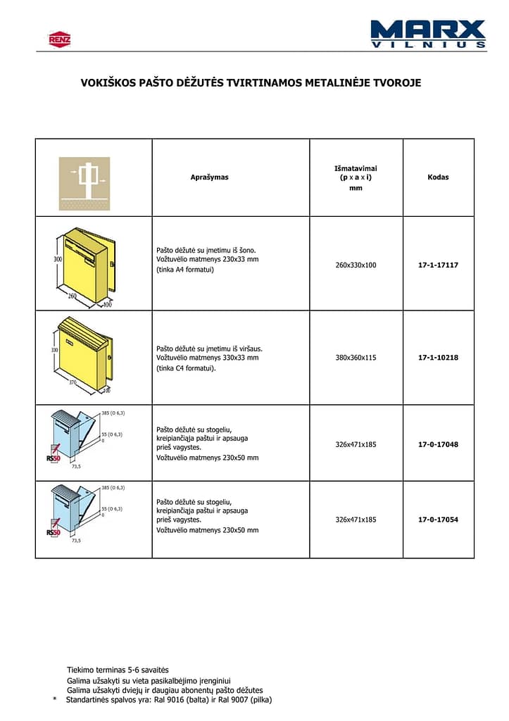 Spalvos: RAL paletė